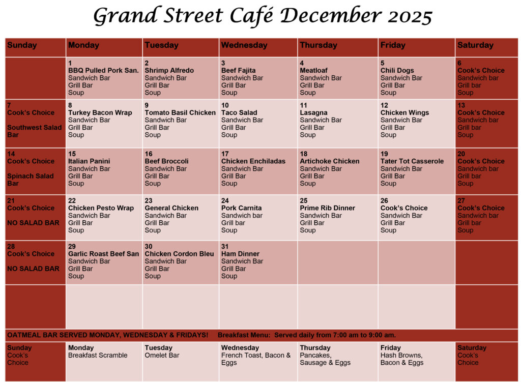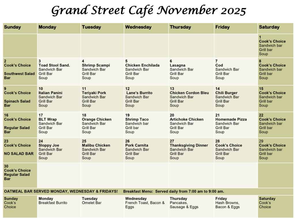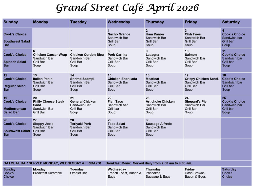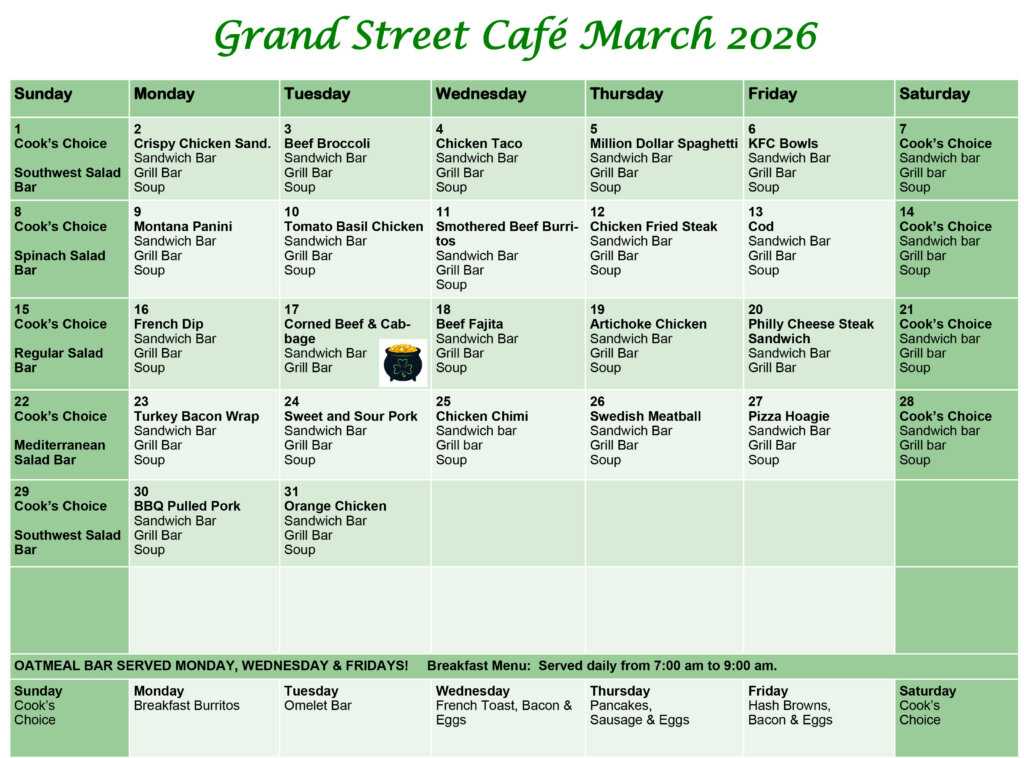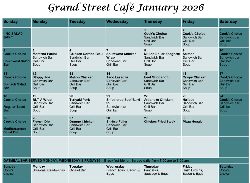 The Grand Street Café is now open to the public from 7 a.m. to 3:30 p.m.